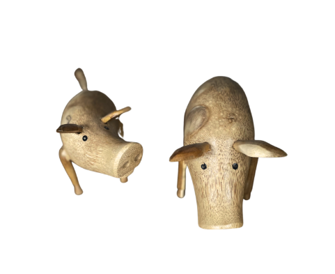 A lovely set of wooden pigs.